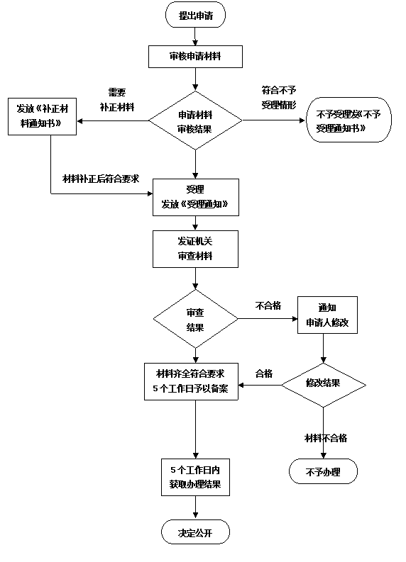 对申请材料符合要求的,准予受理,并向企业发送《受理决定书》。对申请材料不符合要求且可以通过补正达到要求的,将当场向企业发送《申请材料补正告知书》一次性告知,逾期不告知的,自收到申请材料之日起即为受理。对申请材料不符合要求的,将作出不予受理的决定,并当场发出《不予受理决定书》。
