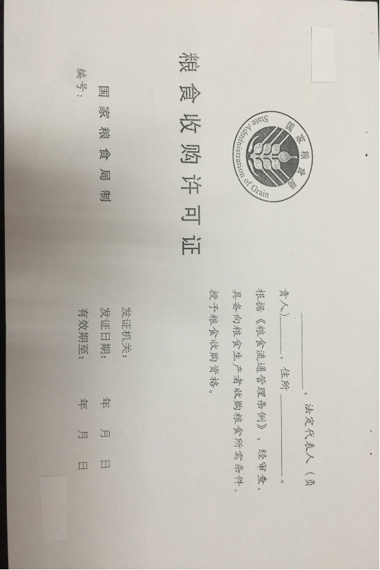 4.对已办理《粮食收购许可证》情况进行公示,并发放《粮食收购许可证》。