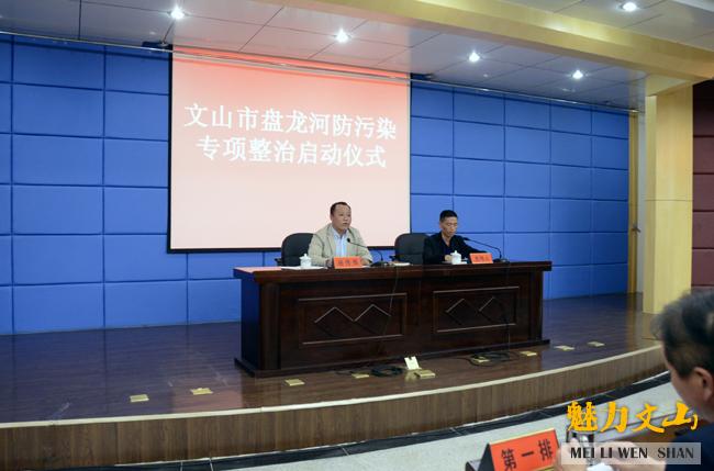 3月14日下午,市委、市人民政府在市会务中心三楼中型会议室举行盘龙河防污染专项整治工作启动仪式,主要目的是动员各乡镇、街道和部门立即行动起来,抓实抓好盘龙河专项整治工作的落实,力争在3月底前使盘龙河得到一次全面治理,改善盘龙河生态环境质量,以崭新的面貌喜迎建州60周年。14个乡(镇)乡(镇)长、3个街道办事处主任、市人大常委会副主任曾茂云及相关单位负责人共150余人参加了会议。政府办副主任杨加军主持会议并宣读了《文山市盘龙河专项整治工作方案》,市委常委、常务副市长杨传辉作讲话。