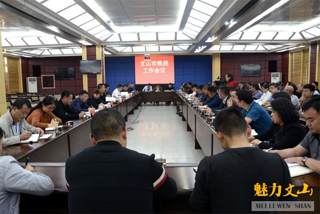会议指出,2018年,全市统一战线工作要深入学习贯彻习近平新时代中国特色社会主义思想和党的十九大精神,全面落实中央、省委和州委关于统一战线的各项决策部署,充分发挥统一战线大团结、大联合的优势,围绕市委中心工作,服务发展稳定大局,充分发挥统一战线的优势和作用,团结引导统一战线广大成员,不断完善多党合作的政治格局,广泛团结民主党派和无党派人士的力量促发展;继续做好新的社会阶层工作,充分整合各阶层的力量促发展;深入开展民族团结进步创建活动,调动各民族力量促发展;深入贯彻落实党的宗教工作基本方针,发挥宗教作用和力量促发展;扎实推动港澳台海外统战工作,广泛凝聚海外人士的力量促发展;加大发现培养使用力度,着力加强党外代表人士队伍建设。同时,要重视和支持统战部门自身建设,不断提升统战干部的业务能力和水平,为决胜全面建成小康社会、奋力开启建设现代文山新征程做出统一战线应有的贡献。
