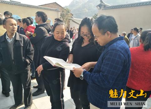 首发式上,主编冉庚文对本书的编辑出版及文化内涵作了简要介绍,文山学院文学院院长杨永福博士对本书的出版意义给予了充分的肯定。前来参加平坝鏊锅饮食文化节的当地群众争先领起新书。主持人现场发放了近300本图书。