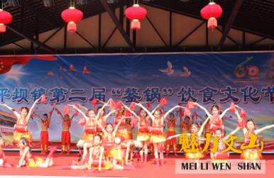 百米长街,宴开百桌。由镇辖区内餐饮店共同参与,将200桌具有民族特色和地方特色的“鏊锅”、“铜炊锅”饮食沿街摆放于古镇街道两旁,形成规模的“长街宴”,数千人团团围坐,品味本地独有的小锅酒,享受喷香可口的臭豆腐、豌豆粉,感受浓浓的平坝“年味”。