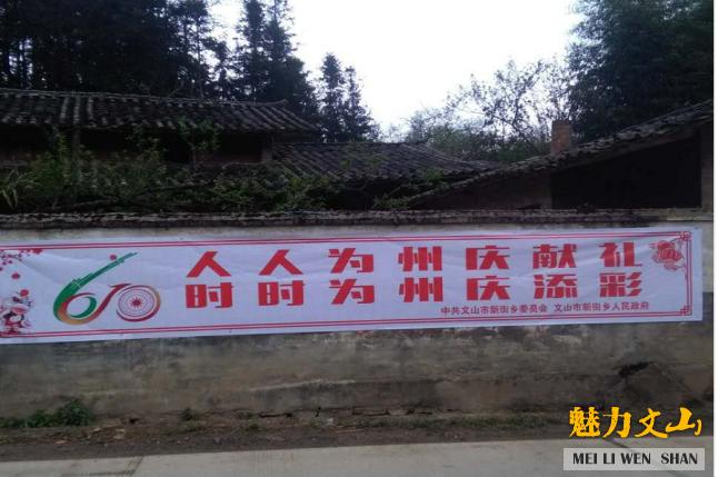 为大力营造建州60周年的良好喜庆氛围,号召全乡儿女积极行动起来,共同庆祝这伟大节日,新街乡在全乡范围内全方位、多角度的营造活动宣传。制作了州庆活动宣传标语,在各村人流集中和显眼的位置将州庆标语悬挂和张贴起来,共悬挂标语180条,更好地营造着浓厚的节庆氛围,使宣传活动热在基层、热在群众,让全乡各族儿女更好地了解建州60周年来经济社会发展取得的巨大成就,感受和谐幸福生活的来之不易。