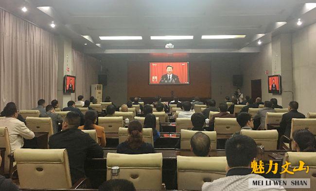 10月18日上午,举世瞩目的中国共产党第十九次全国代表大会隆重开幕,全市上下干部群众欢欣鼓舞,市委、市人大常委会、市政府、市政协领导班子成员,以及市委办公室、市政府办公室、市委宣传部全体党员干部共计近110余人在市会务中心一楼视频会议室集中收听收看中国共产党第十九次全国代表大会开幕式现场直播。各级各部门基层党员干部群众纷纷通过广播、电视、网络手机等媒介收听收看了十九大盛况,氛围浓厚。