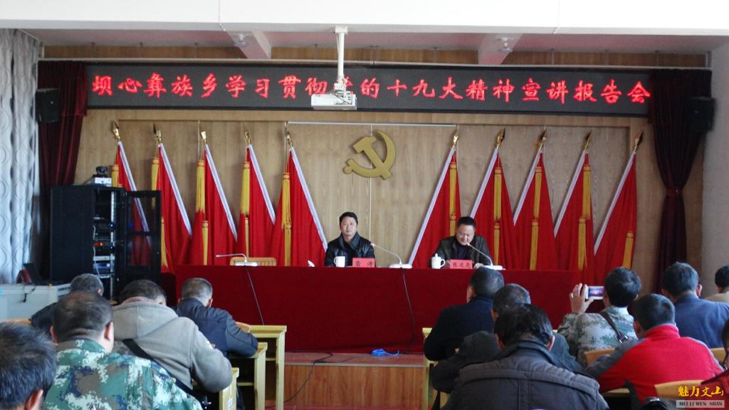 报告会上,雷涛局长紧紧围绕党的十九大主题,深刻阐述十九大精神的丰富内涵,紧密结合坝心乡作为文山市“乡村振兴”首个试点乡镇,重点讲述了十九大报告中的乡村振兴战略。雷涛局长的宣讲报告观点鲜明、内容丰富,与会人员深受教育和启发,对全乡深入学习贯彻党的十九大精神、指导实践、推动工作起到了积极的促进作用。最后乡党委书记张运尧要求:全乡上下要把学习贯彻党的十九大精神作为当前和今后一个时期的重要政治任务。新时代要有新气象,新气象要有新作为,要深刻领会党的十九大精神实质,进一步强化担当,凝聚共识,把学习贯彻党的十九大精神与推动全乡当前工作紧密结合起来,与大力弘扬“跨越发展、争创一流;比学赶超、奋勇争先”和发扬“等不是办法,干才有希望”的西畴精神紧密结合起来,扎实向前推进乡村振兴战略、脱贫攻坚、社会事业等不断取得新成效,确保圆满完成今年全乡经济社会发展的各项目标任务,推动党的十九大精神在坝心落地生根,为奋力夺取脱贫攻坚胜利、决胜全面建成小康社会、实现人民对美好生活的向往而努力奋斗!