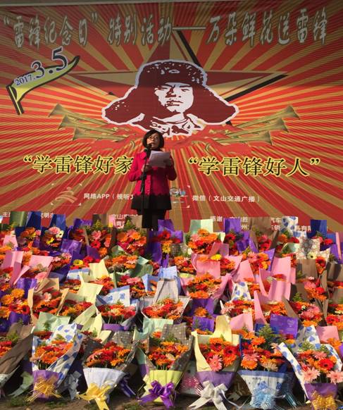 文山广播电视台开通电视、广播、微信微博广泛动员全社会推荐“身边的雷锋”,征集各行各业、机关事业单位中涌现的文山好人、最美人物、好人好事、身边好人和普通凡人善举市民等先进典型800余人,并动员各乡镇、街道、社区、家庭和个人积极参与“万朵鲜花送雷锋”活动,将鲜花送至其他普通市民手中,拉开了“关爱雷锋人”的序幕。