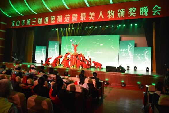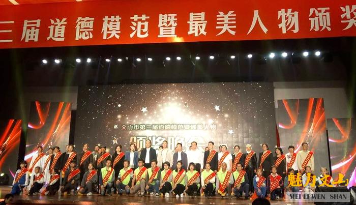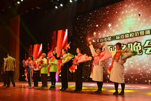 道德模范的光芒温暖人心,最美人物的力量催人奋进。5月18日晚,文山市第三届道德模范暨最美人物颁奖晚会在文山市会务中心举行,文山市四套班子领导为“十大道德模范”和40名最美乡村医生、最美教师、最美少年、最美志愿者进行了隆重颁奖。