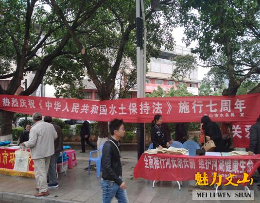 活动以发放宣传单、悬挂横幅、现场咨询等宣传方式,向广大市民积极宣传《中华人民共和国水法》、《中华人民共和国防洪法》、《中华人民共和国水土保持法》、《云南省水土保持条例》、《云南省文山壮族苗族自治州水资源条例》、《文山壮族苗族自治州水工程管理条例》、《中华人民共和国河道管理条例》、《文山壮族苗族自治州河道管理条例》等水法律法规,呼吁群众节约水资源、保护水资源、做好水土保持工作。