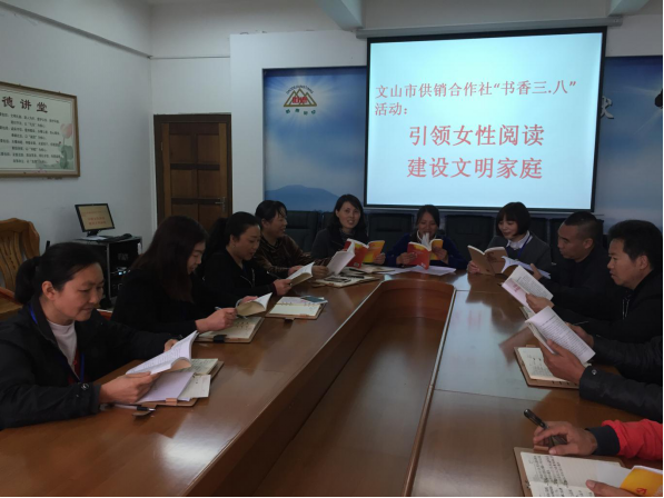 3月24日,根据《文山市总工会女职工委员会关于开展2018年“三八”节活动的通知》(文市工发〔2018〕3号)要求,市供销合作社工会决定以全国“书香三八”活动为平台,组织开展“书香三八”女职工读书活动。