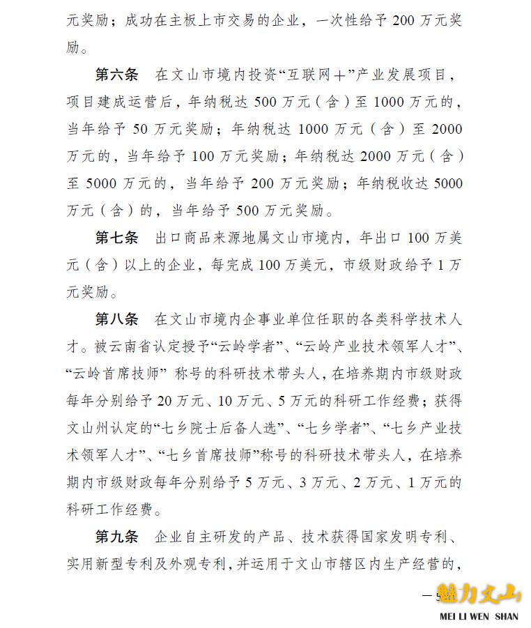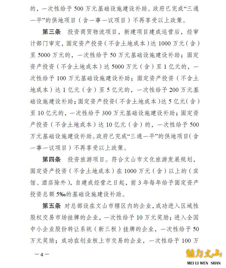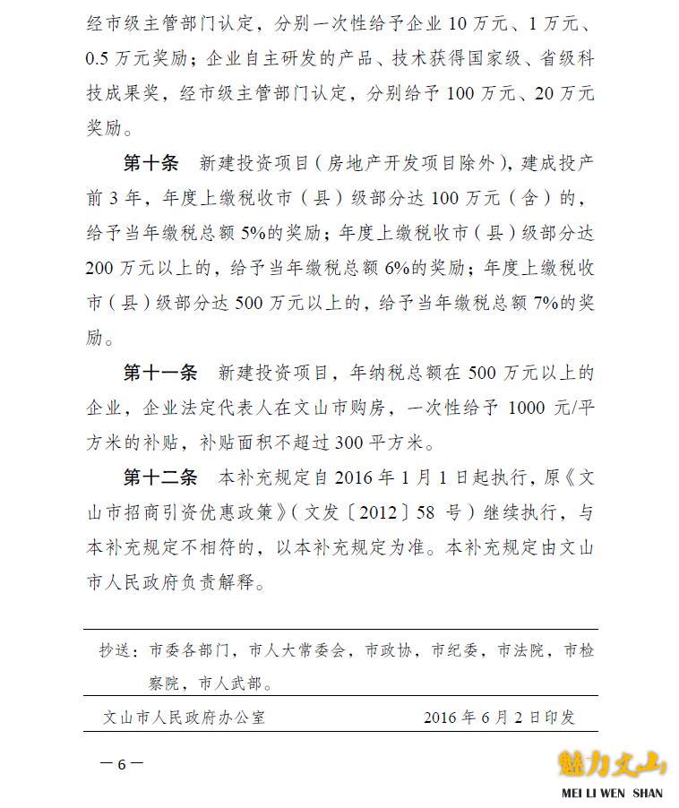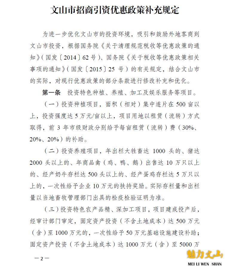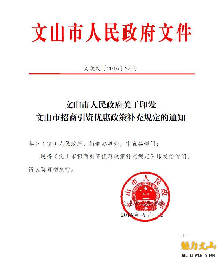 文山市人民政府关于印发文山市招商引资优惠政策补充规定的通知
