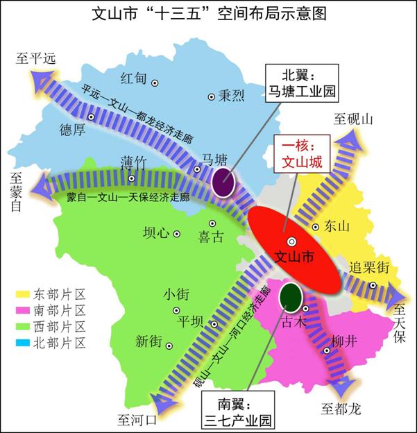 国家“一带一路”和长江经济带已经成为我国最重要的区域发展战略,“十三五”时期将深化推进,我国与周边国家和地区“亲、诚、惠、容”国际化进程将不断加快,国内区域的协同发展将得到加强。文山市地处“一带一路”、珠江—西江经济带、中国—中南半岛经济走廊的战略交汇区域,是云南省对内对外开放的重要节点,在扩大对外开放、积极承接产业转移、推进互联互通基础设施建设等方面迎来难得的发展机遇。